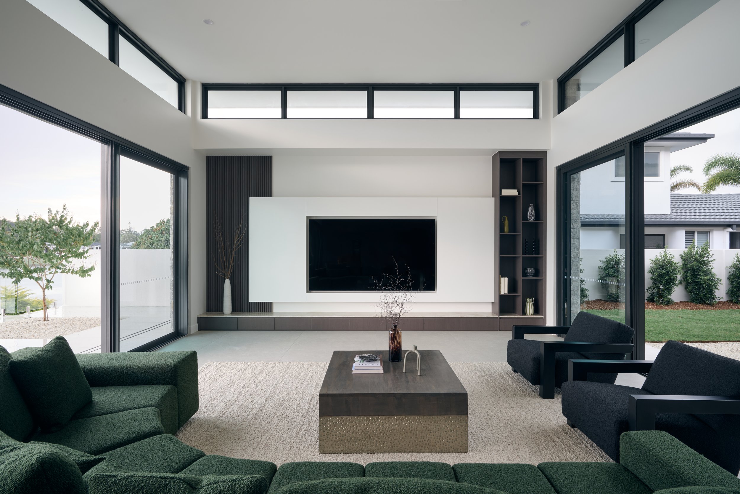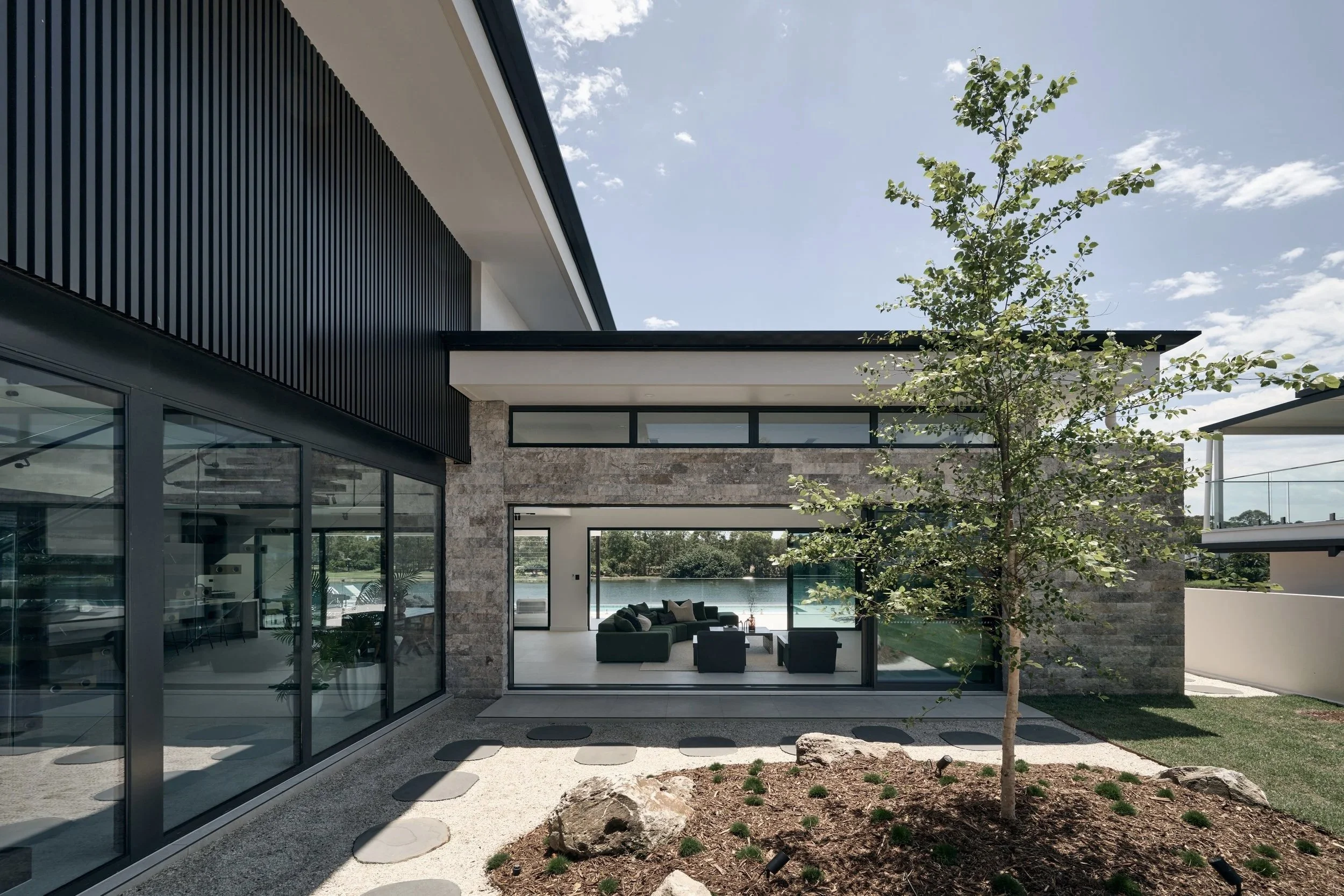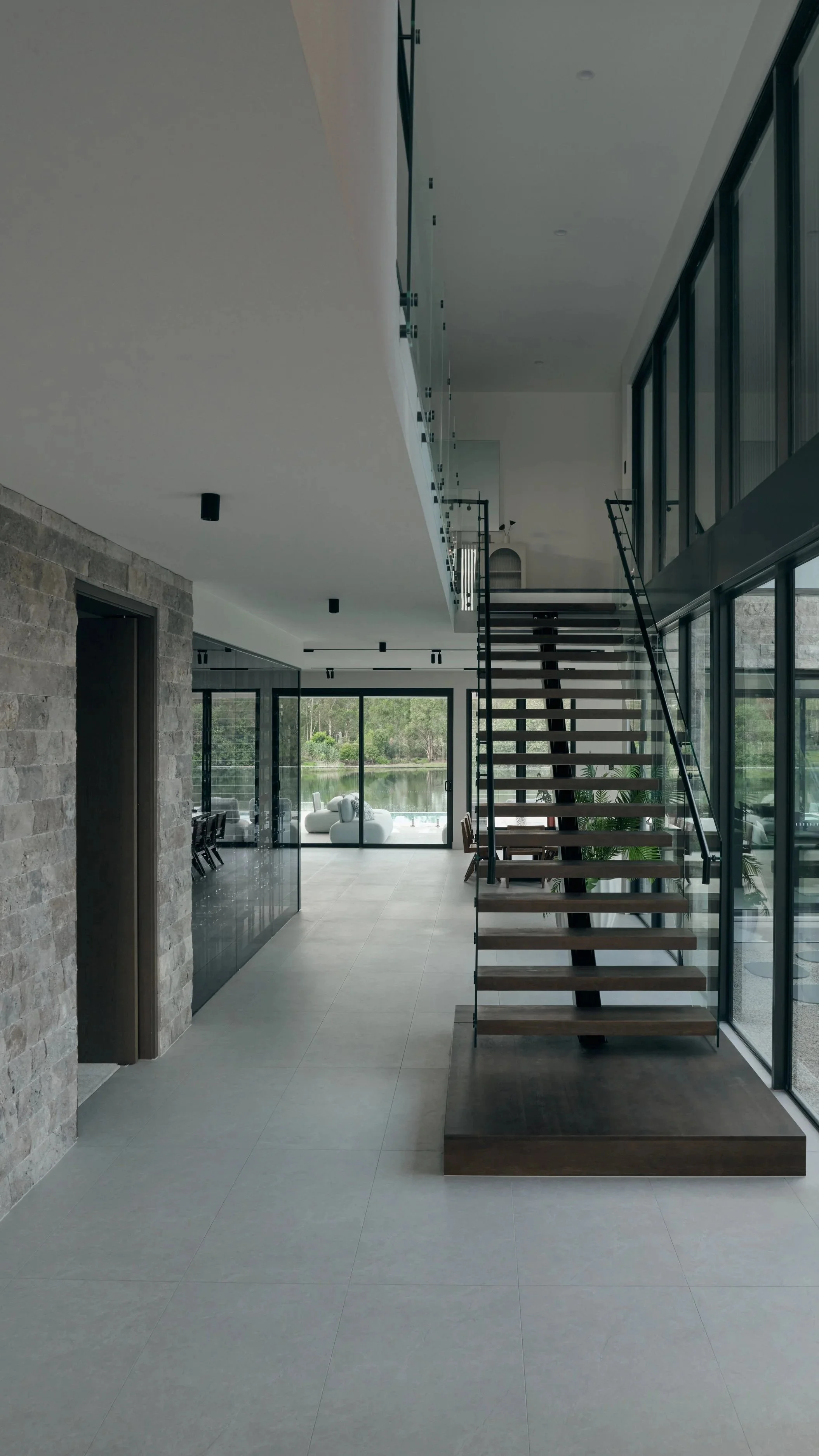 Timber, stone, and shadow work together to create depth without excess, allowing light, reflection, and seasonality to shape the experience of the home. Each space is deliberately positioned to engage the water and gardens beyond, offering calm perspectives that shift throughout the day.